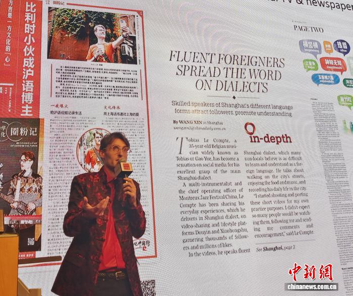 能说一口上海话的比利时音乐人兼沪语博主高悦(Tobias Le Compte)16日做客布鲁塞尔中国文化中心,向比利时民众娓娓道来他与上海的深厚情缘。