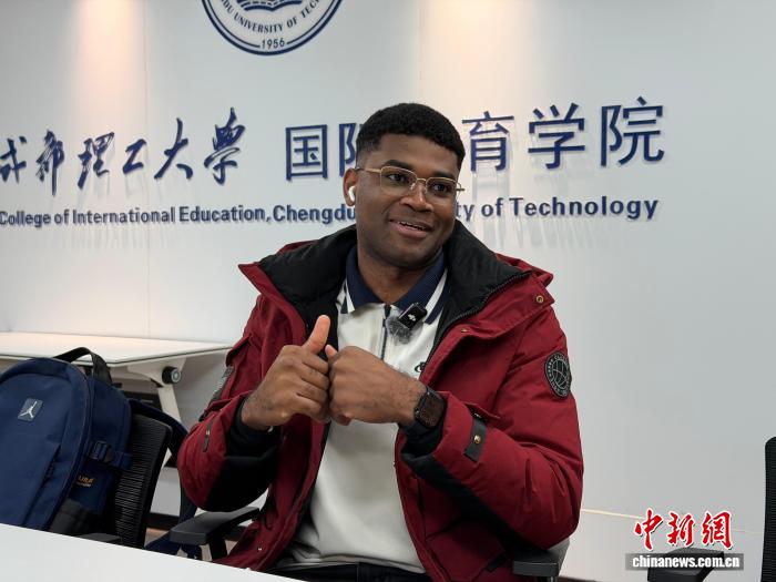 近日,成都理工大学刚果(布)留学生杨思在成都接受中新社记者采访。中新社记者 何浠 摄