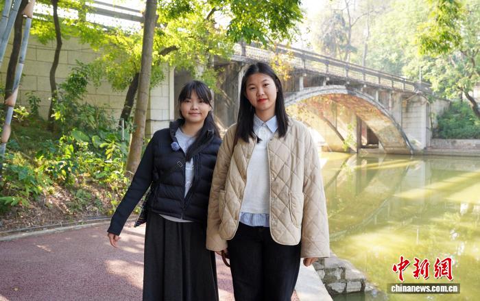 近日,林德伟(右)与妹妹林娇娇在广西民族大学留影。中新网记者 黄艳梅 摄
