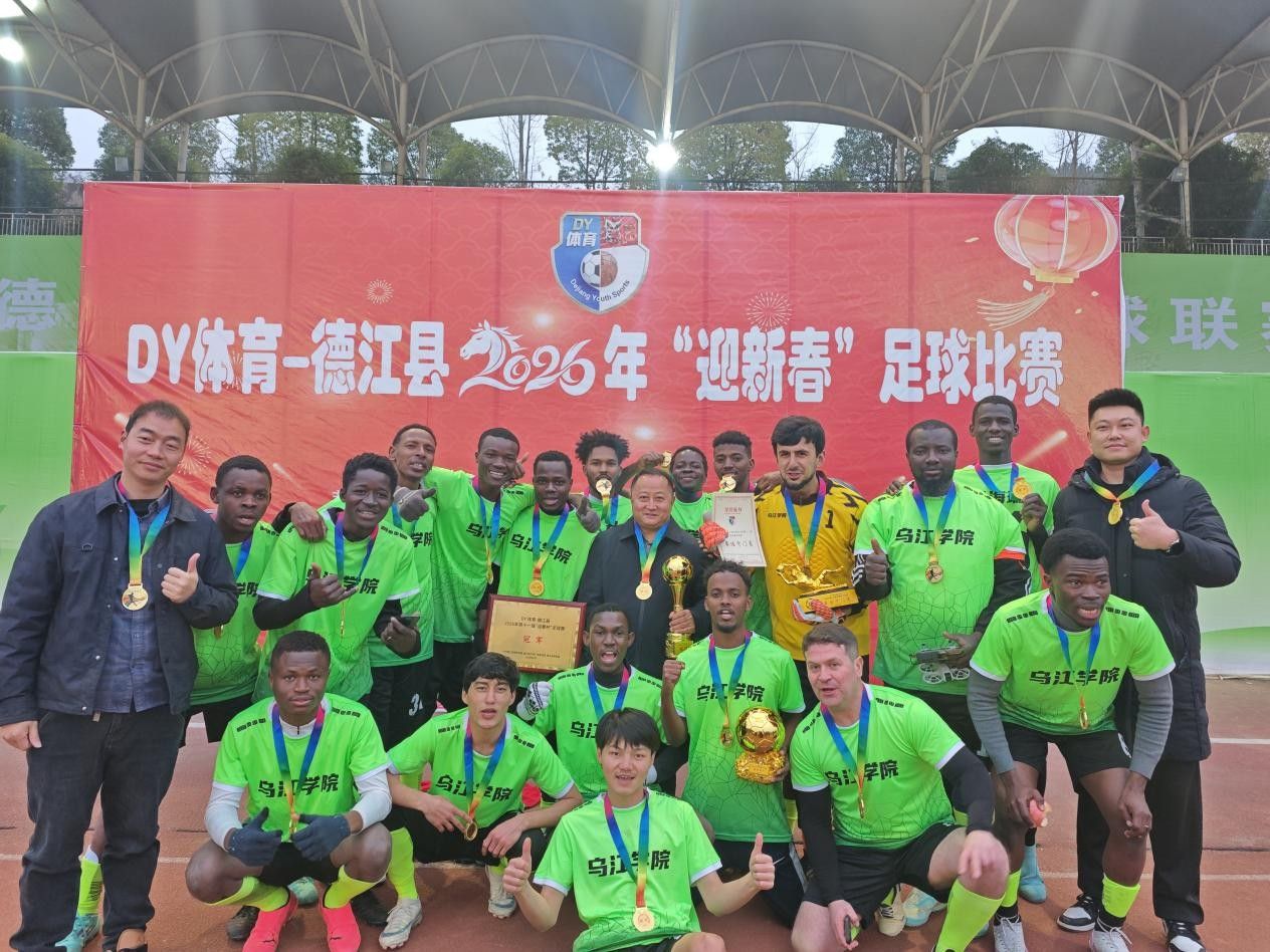 春节前夕,贵州省铜仁市德江县2026年“迎新春”足球比赛圆满落幕。一支由铜仁学院乌江学院的各国留学生组成的队伍一路过关斩将,最终捧起冠军奖杯。