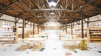 由青山村东坞礼堂改造而成的融设计图书馆。