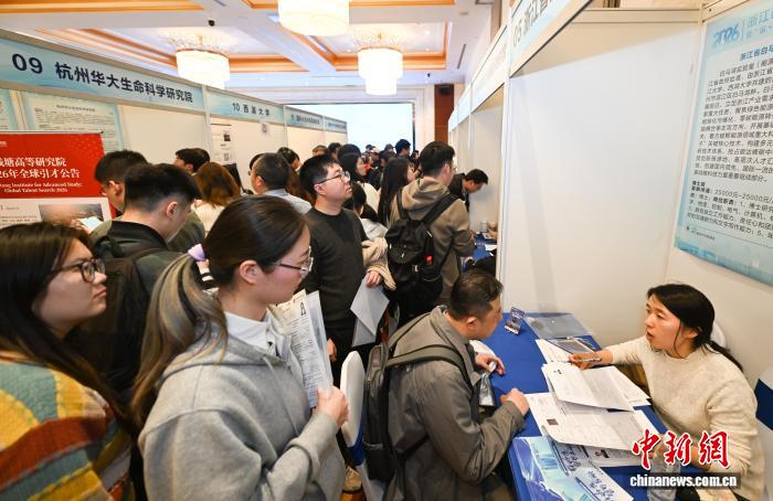 3月15日,不少求职者参加高层次人才洽谈会。当日,2026年浙江省高层次人才洽谈会暨“留·在浙里”海外高层次人才招聘会在杭州举办,当地众多省级实验室、科研院所、龙头企业等推出的3400余个岗位吸引海内外人才,其中近七成求职者为博士。中新社记者 王刚 摄