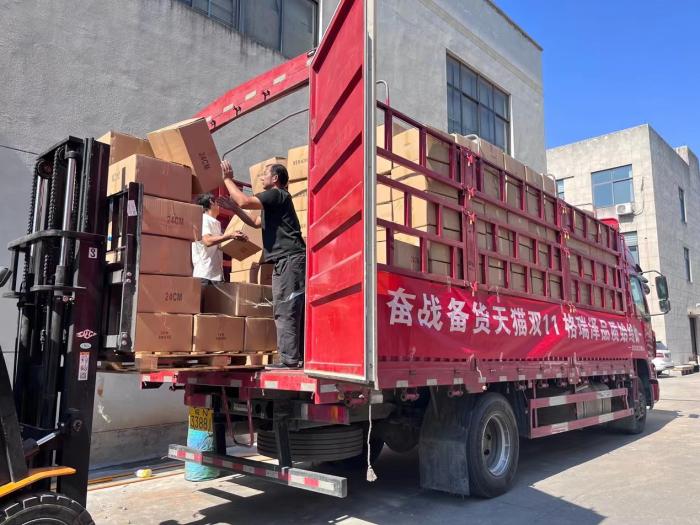 天猫双11临近,浙江乌一家居产品工厂内工作人员,正在忙碌地备货。