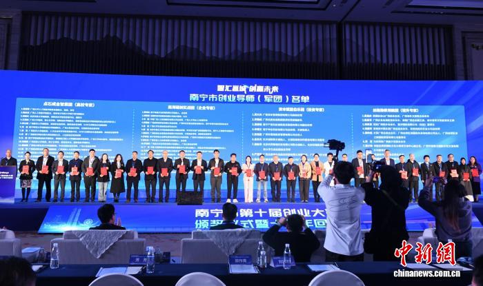 图为赛事主办方向南宁市创业导师颁发聘书。林浩 摄