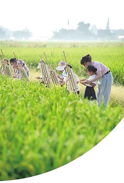 四川眉山市彭山区学院路幼儿园学生在田间写生。翁光建摄(影像中国)