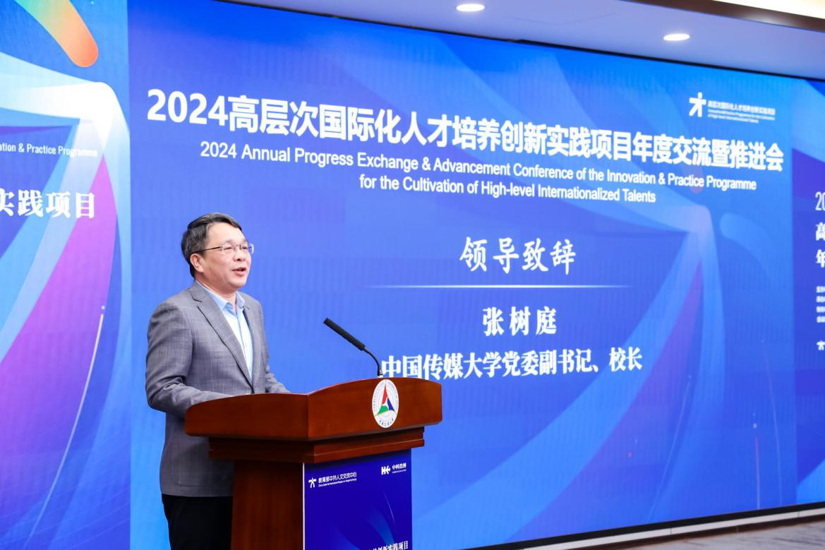 张树庭代表中国传媒大学向各位领导和参会嘉宾们致以热烈欢迎。他表示,今年是中国传媒大学建校70周年,近年来,学校积极推进教育国际化,与200多所境外知名大学、科研与传媒机构建立了交流合作关系。作为高层次国际化人才培养创新实践项目首批建设高校,多次承办中外双导师学术科研课题工作坊,高质量建设国际组织人才培养基地。未来,中国传媒大学愿与各方密切联系、加强合作,在继承中创新,在创新中突破,共同探索高层次国际化人才培养的创新模式与有效路径。