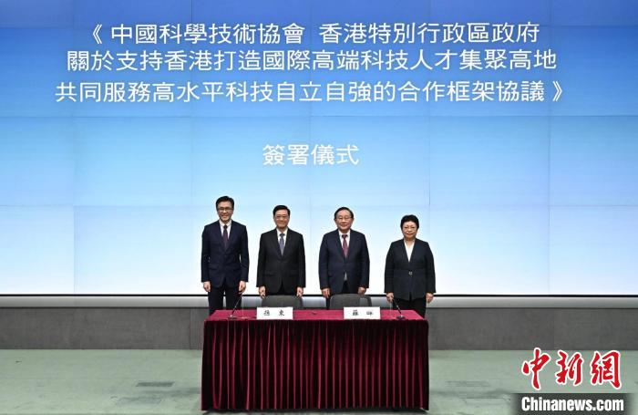 香港特区政府与中国科学技术协会(中国科协)3日共同签署《关于支持香港打造国际高端科技人才集聚高地 共同服务高水平科技自立自强的合作框架协议》(下称《协议》)。
