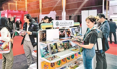 据人民教育出版社展区的工作人员介绍,《快乐中文》是已出版多年的经典教材《快乐汉语》的升级版,“对标《国际中文教育中文水平等级标准》和《国际中文教育用中国文化和国情教学参考框架》等最新标准进行编写,出版社还同步研发了智慧教育数字资源体系”。