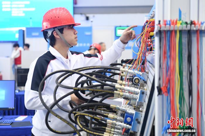资料图为今年4月16日,湖南省第二届职业技能大赛中,选手进行工业机械项目的比赛。 中新社记者 杨华峰 摄