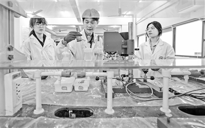 在浙江金华职业技术大学,学生们一起进行绿色绝缘粉末涂料的制备实验。新华社记者 张玉薇摄