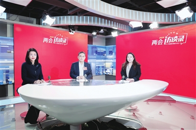 全国人大代表、中国科学院院士、首都师范大学校长方复全(左二),教育部教师工作司教师发展处处长赵静(左一)做客中国教育报刊社“两会访谈录”。冯子琪 摄