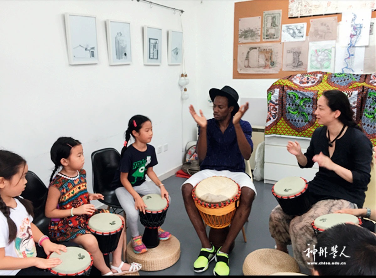 阿蓓(ABE)舞团在北京给孩子们上鼓课(作者供图)
