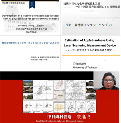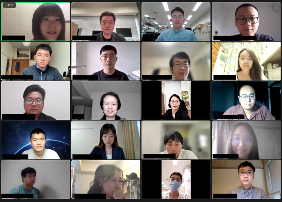 曾在东京工业大学访学交流的博士裴逸飞、东京工业大学博士生张喻升、东京工科大学博士生周博豪,筑波大学博士生阿曾村一郎和饭田大希等5位学生学者分别分享了自己的研究内容、研究方法及当前研究存在的问题和难点。参会同学积极思考,主动提问,进行了深入交流。