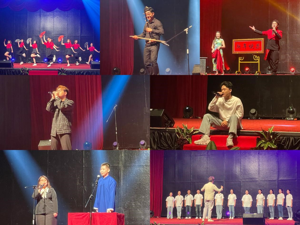 晚会由“国风—千呼万唤始出来”“青春—春风得意马蹄疾”“爱国思想—独在异乡为异客”3个篇章组成。舞蹈《寄明月》、二胡演奏《战马奔腾》、魔术表演《国潮魔幻秀》、旗袍秀《声声慢》表达了留学人员对新年的美好期待,民谣弹唱《这世界这么多人》、原创说唱《For U》、舞蹈《HWAA》等节目展示了留学人员积极向上的青春风貌和对未来的期许祝福,男女对唱《万疆》、相声《打灯谜》、合唱《萱草花》等节目表现了留马学子对祖国的思念和热爱。