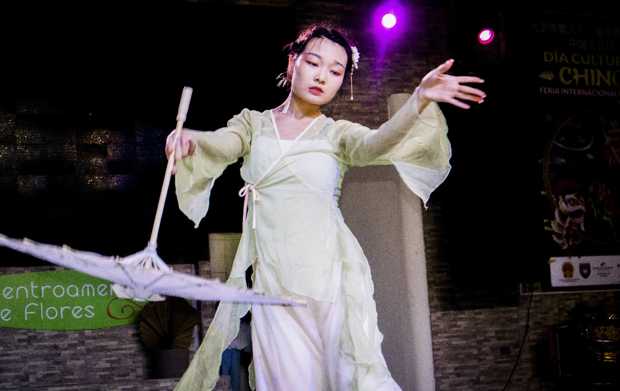奇里基联谊会醒狮团为观众带来的舞狮表演,祈望为人们带来好运,生活吉祥如意。姚睿彤用舞蹈《白蛇•缘起》向观众讲述了中国四大民间爱情传说之一——《白蛇传》。舞蹈中,纸伞仿佛被赋予了生命,开合间似是在讲述那段西湖畔、烟雨中、千年等一回的相逢。孔院师生为大家带来的合唱《你笑起来真好看》,展现了“各美其美,美人之美;美美与共,天下大同”的美好愿景,祝愿中巴两国友谊长存。郭晶和林晓铭为观众演绎了中西双语版的巴拿马民歌《我的心里只有你没有他(Historia de un amor)》,耳熟能详的旋律让观众情不自禁地一起跟着哼唱起来。伴随着《礼仪之邦》古典大气的音乐,巴拿马大学孔子学院的五位志愿者老师和奇利基当地学生共同为观众呈现了一场汉服秀,带领观众领略华裳之美。