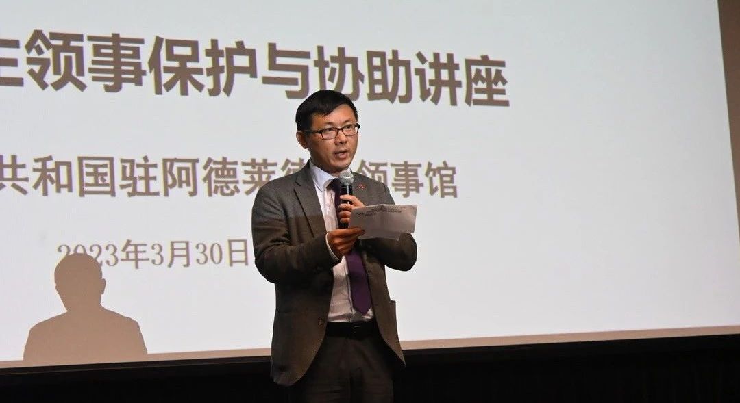 (神州学人网讯)为提升领区内留学人员安全防范意识和应对能力,确保平安留学,3月30日,中国驻阿德莱德总领馆联合南澳州教育推广署在阿德莱德大学举办2023年“领保进校园平安留学”讲座,来自阿德莱德大学、南澳大学和弗林德斯大学约140名中国留学人员参加了活动。