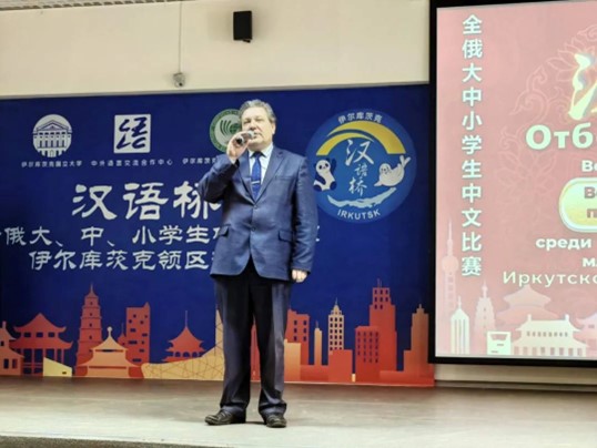 伊尔库茨克国立大学孔子学院由伊尔库茨克国立大学与辽宁大学共建,辽宁大学副校长霍春辉在视频致辞中指出,“汉语桥”中文比赛为促进两国教育文化合作作出了重要贡献,也为青年之间增进了解、交流互鉴提供了宝贵机会,期待两校合作不断取得新成就。