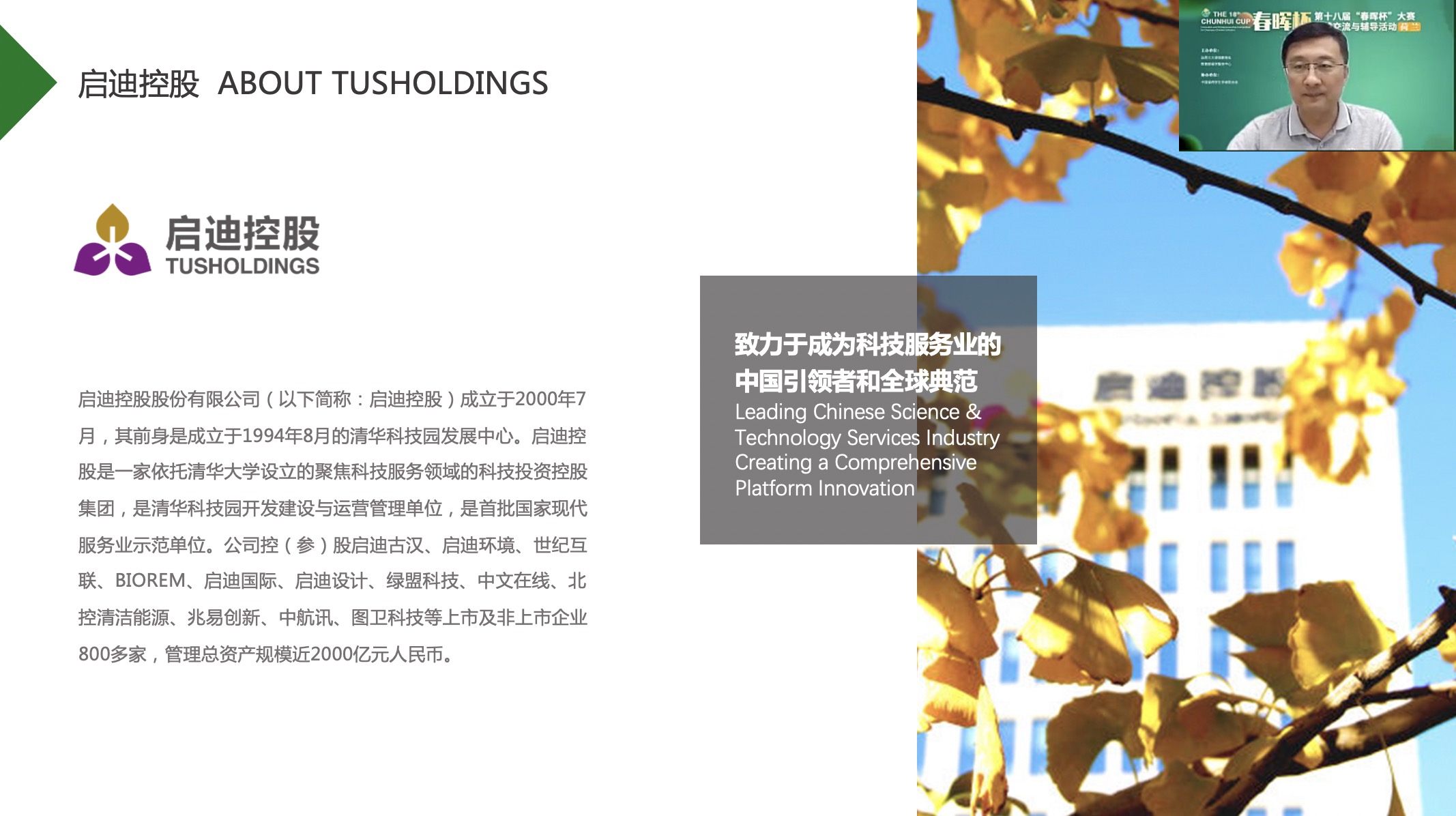 启迪控股依托清华大学设立,聚焦科技服务领域,启迪之星则在启迪控股的指引下,积极构建创新创业生态系统。据启迪控股孵化业务总监、启迪之星常务副总经理刘雪良介绍,启迪之星打造了全链条孵化模式,采用开放平台合作架构,为创业企业提供一站式创业服务,打造了“政产学研金介贸媒”等各种创新要素有效融合的创新创业环境。他希望海外学子加入启迪之星的广阔平台,将有价值的创业项目落地生根。