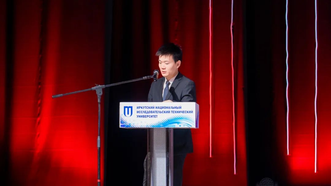 赵春露代表总领馆向全体新生表示慰问,并从留学手续等方面阐述“平安留学”工作理念,他希望同学们努力学习、奋发有为,做中俄友谊的使者。