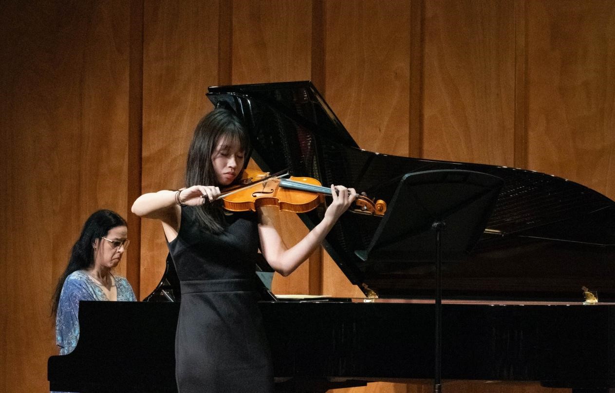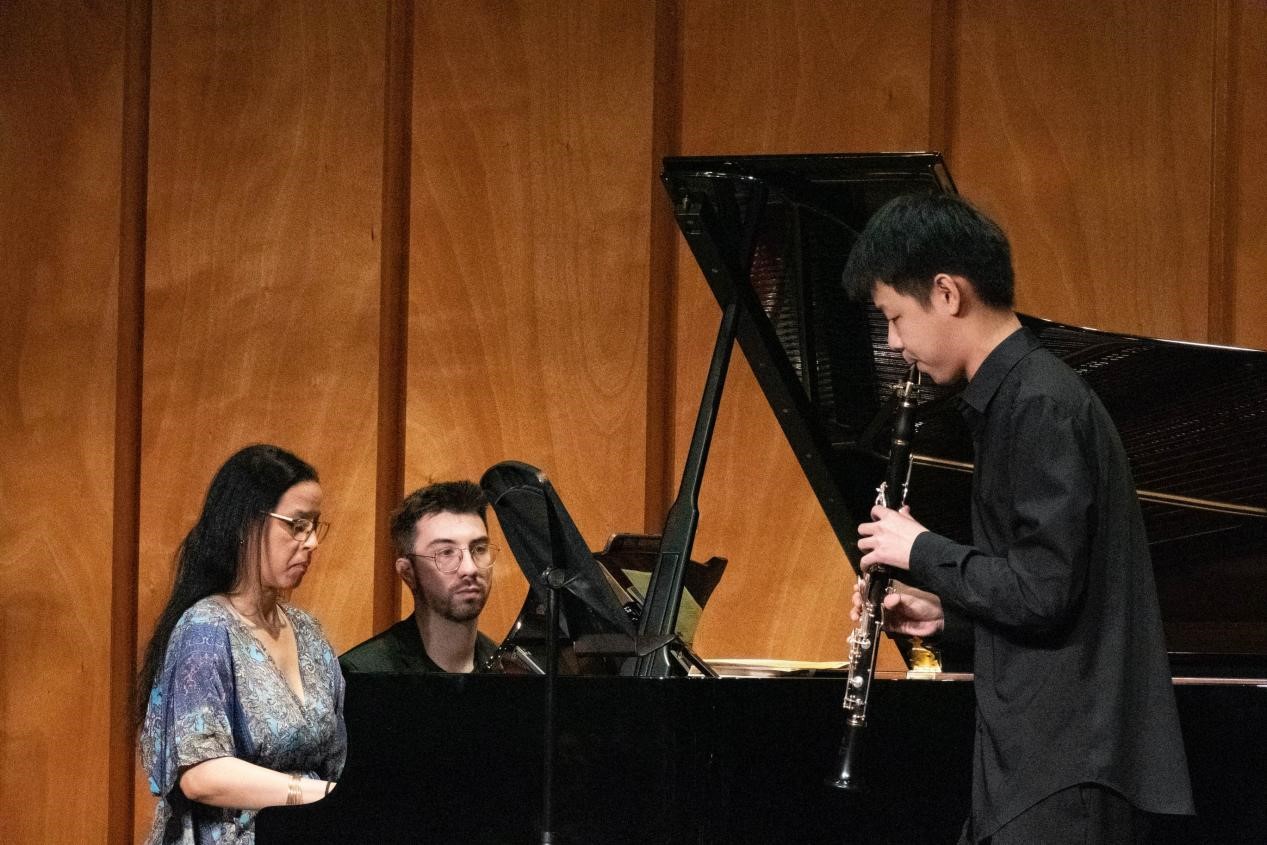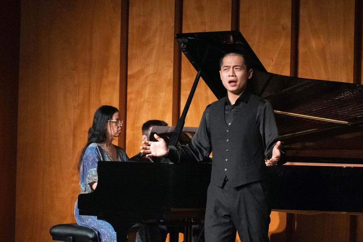 音乐会现场,利赛欧高等音乐学院的钢琴教师弗兰德拉女士与中国参演学生默契合作,美妙动听的歌唱和乐曲受到在场观众的热烈欢迎。