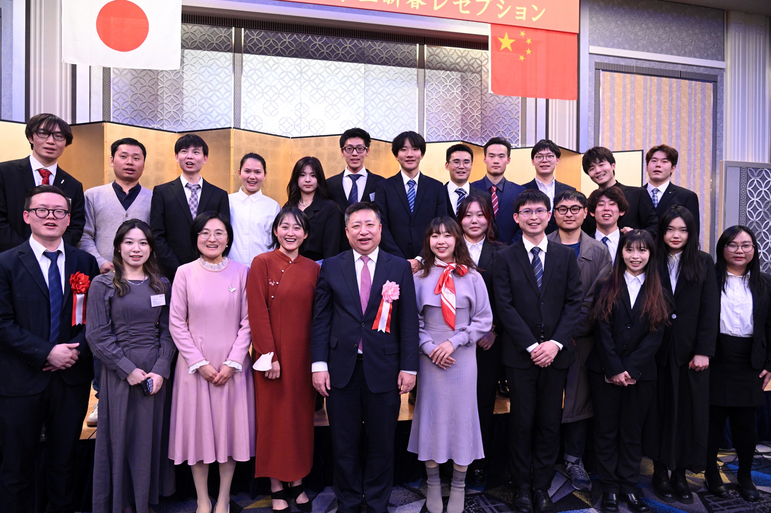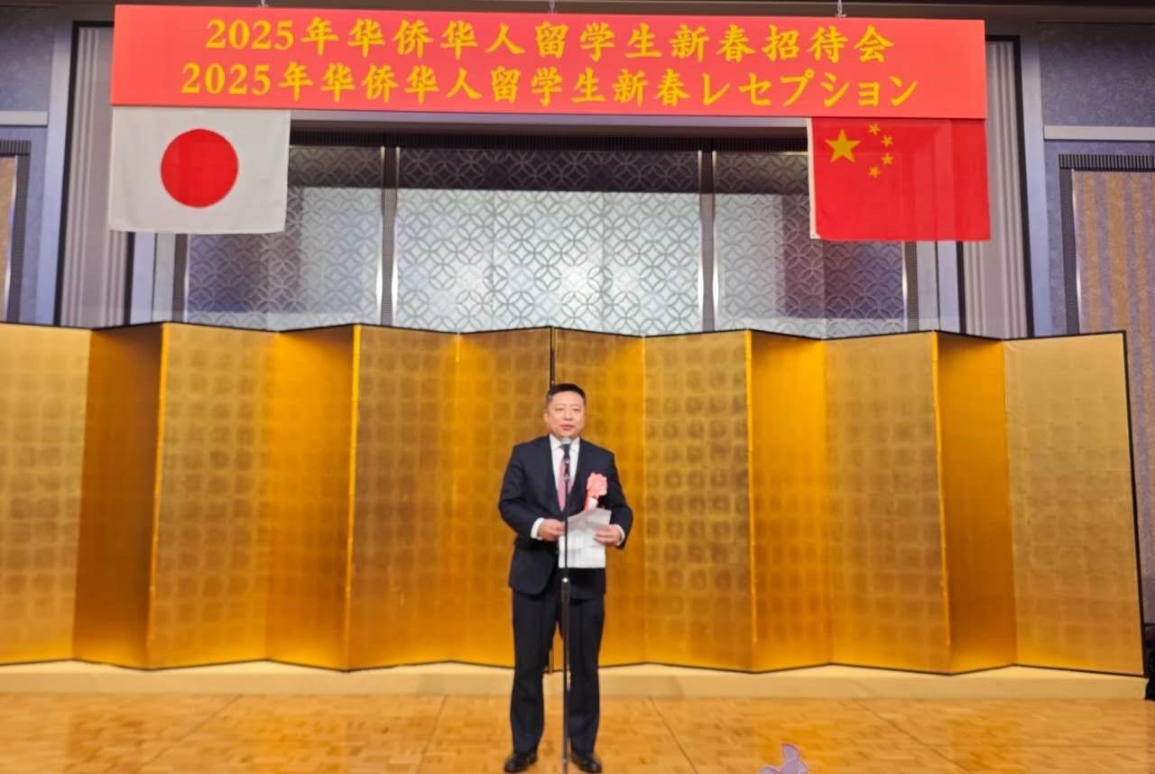 神州学人网讯 2月10日,中国驻福冈总领馆举办2025年“温暖迎春·共庆中国年”华侨华人留学生新春招待会,驻福冈总领馆代总领事成岩、福冈华侨总会会长林舜人、九州华侨华人青年联合会会长付强、九州地区学友会会长赵泽誉等出席并致辞,冲绳新华侨华人总会会长岛袋云茜致祝酒词。领区内主要侨团、留学人员、中资企业人员、华校、日本友好人士及青年学生代表等约300人出席。