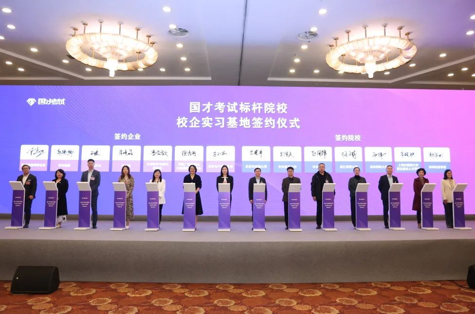 国际人才英语考试秉持“立足中国、沟通世界、服务职场、推动教学”理念,培养、选拔有家国情怀、有全球视野、有专业本领的国际化实战人才,推动教育与产业的精准对接。本次活动为北京外国语大学、中央民族大学、中北大学、浙江师范大学、曲阜师范大学、上海外国语大学贤达经济人文学院、郑州科技学院等7所国才考试标杆院校,邀请北京电子商务协会、河南广播电视台大象国际传播中心、环球网、外研社、长城汽车、策马集团、段和段律师事务所等7家行业协会、企事业单位,促成双方达成战略合作,共同签署校企实习基地协议。