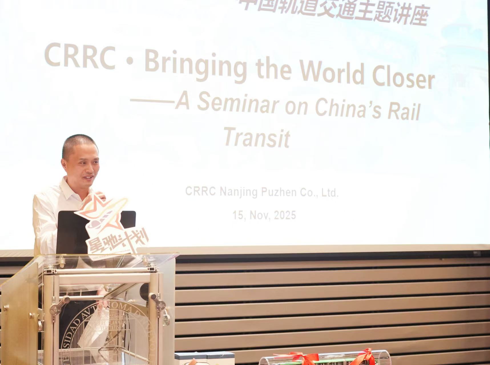 在主题讲座环节,与会者共同观看了《坐着火车看世界》及中车企业宣传片,从宏观层面了解中国轨道交通的发展成就与创新能力。项目管理负责人马喆系统介绍了中国中车及南京浦镇公司的整体发展和技术布局。杨勇则以生动易懂的语言,讲解了单轨交通的技术原理、系统优势与应用前景,加深了听众对现代轨道交通的认知。