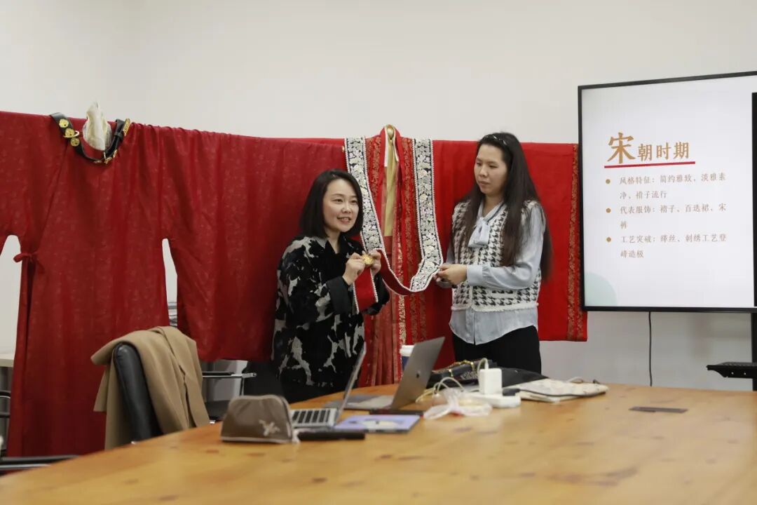 活动以“学”为根基,首站锚定中国服饰艺术研究与教育的高地——北京服装学院。2025年12月28日,开营仪式举行,随即开启了系统性的理论教学。北京服装学院服装艺术与工程学院副院长梁燕教授、孙雪飞教授、杜冰冰教授等教师组成授课团队,为美国学生学者们构建起理解中国服饰文明的框架。课程内容涵盖中国民族服饰文化与民族服饰体系、中国传统服饰的历史演变等内容,从形制逻辑、礼仪制度,到丝绸织造、纹样象征、刺绣流派,层层剥茧,深入浅出。