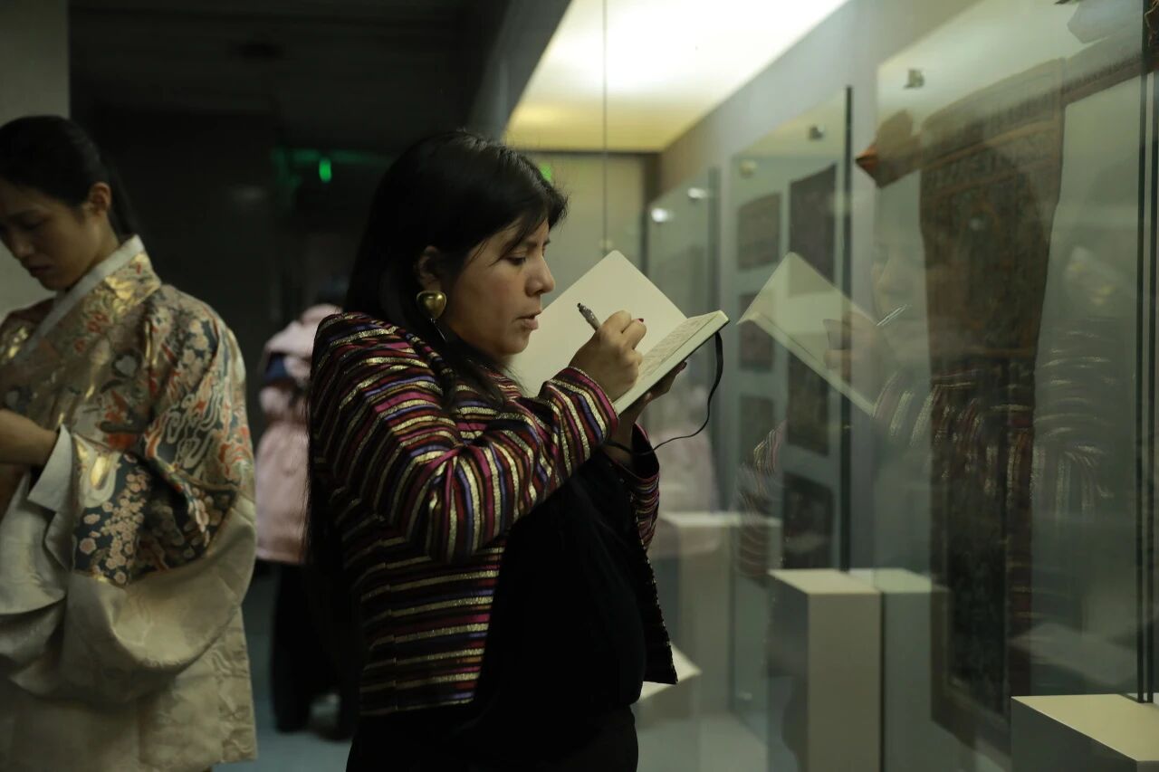 随后,学员们前往杭州——中国丝绸文明的重要发源地。在中国丝绸博物馆,一部跨越五千年的丝绸史诗通过实物、图像与多媒体徐徐展开,学员们系统了解了蚕桑起源、织造技艺以及丝绸如何作为文明使者沿丝绸之路走向世界。在工厂现场,学员们第一次近距离观察缫丝、织造与现代生产流程,理解传统工艺如何在当代工业体系中实现延续与创新。