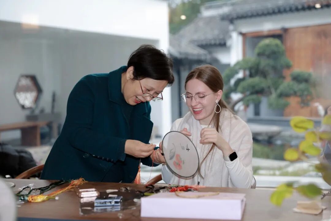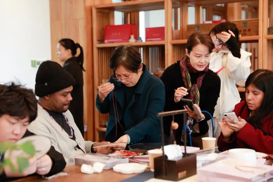 在苏州,这座以“人间天堂”和“丝绸之府”闻名的古城,学员们走进了中国刺绣艺术馆和苏州丝绸博物馆。苏绣的“精细雅洁”在馆藏珍品中展现得淋漓尽致。而在苏绣非遗传承人的工作坊里,历史从书本走进了指尖。美国学者们在传承人的悉心指导下,学习经典的苏绣针法,静心完成属于自己的第一件刺绣作品。