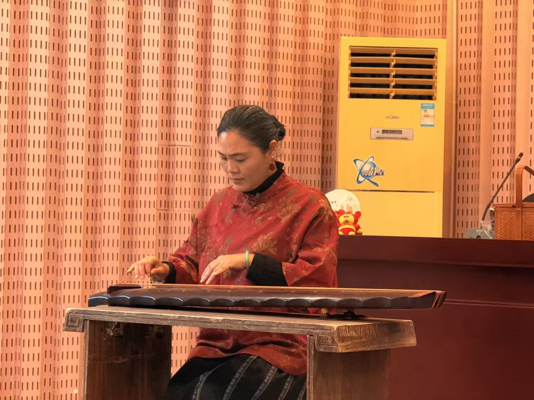 迎合着古琴余韵,留学生带来精彩的才艺表演。老挝留学生小米舞蹈柔美翩跹;巴西留学生萧俊安和李龙与中国学生怀抱吉他弹唱起现代歌谣;越南留学生用古筝拨出东西交融的旋律……