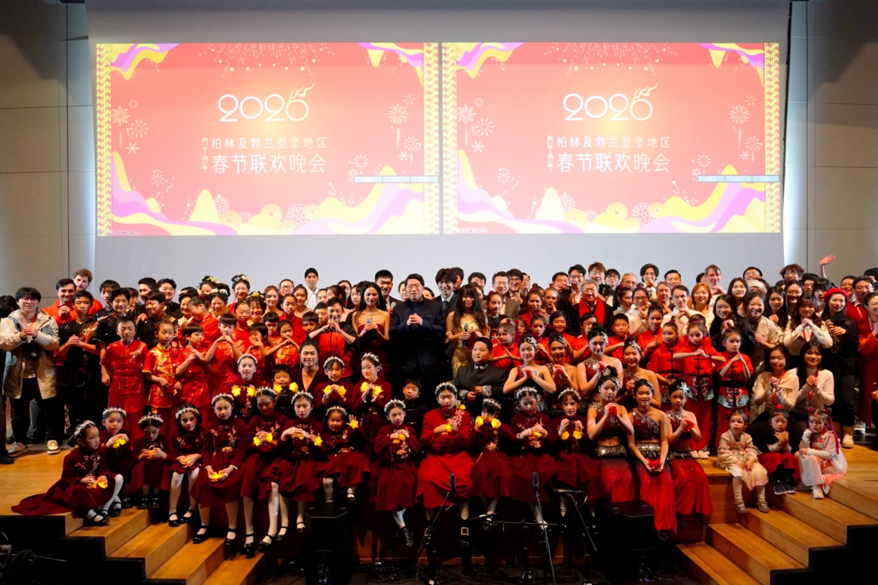 神州学人网讯 2月1日,2026年柏林及勃兰登堡地区留学生春节联欢晚会在柏林工业大学举行。中国驻德国大使邓洪波出席晚会,亲切会见演职人员并合影留念。