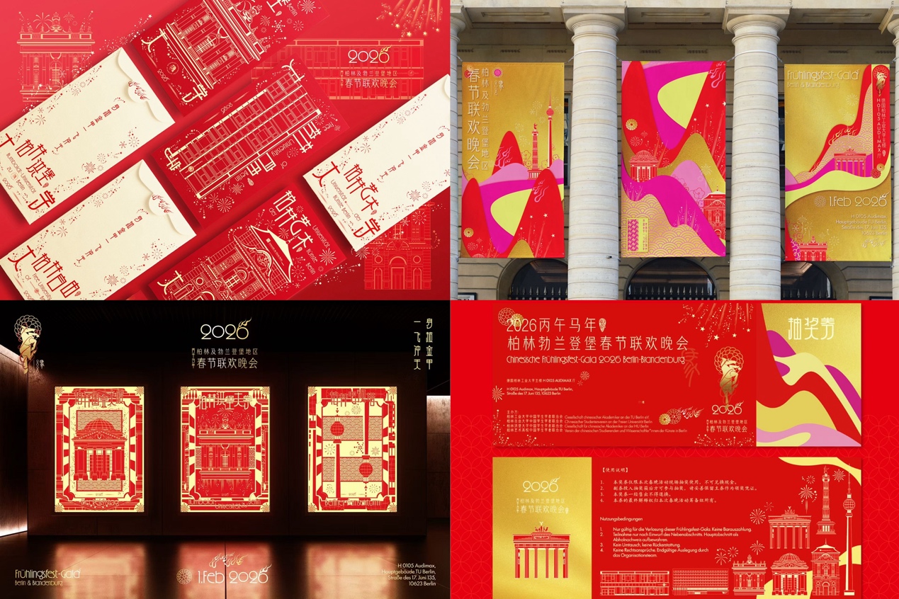 在整体视觉风格方面,本届晚会以金色与红色为主色调,将春节的喜庆氛围融入柏林城市意象之中。设计师刘于菲介绍称,主海报从丝绸之路与《西游记》的故事出发,描绘取经者自东方启程、逐梦前行的画面,寓意留德学子在异国他乡坚守初心、勇敢追梦。同时,主办方围绕柏林地标创作插画,设计了红包、贴纸、手机壁纸等活动周边,进一步增强了节日氛围与观众参与感。