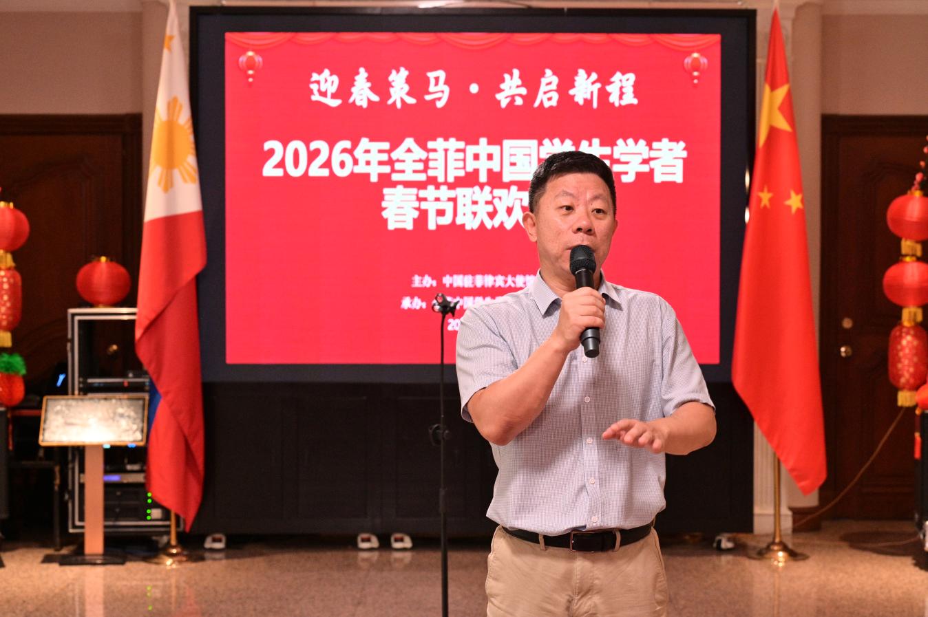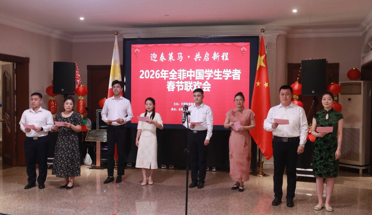 神州学人网讯 2月8日,由中国驻菲律宾使馆主办、全菲中国学联承办的“迎春策马·共启新程—2026年全菲中国学生学者春节联欢会”在马尼拉举行。中国驻菲律宾特命全权大使井泉,参赞熊胜,秘书贾雁鹏,在菲中国学生学者,孔子学院师生,北京大学、厦门大学菲律宾校友会代表,以及中资企业、国际组织嘉宾朋友130余人欢聚一堂,共迎丙午马年新春。