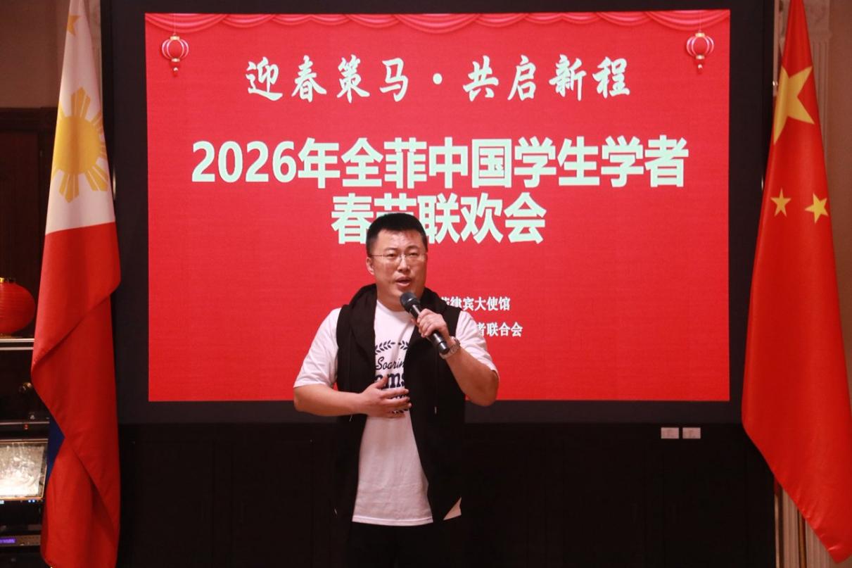 全菲中国学联主席魏玉彪回顾了学联近3年来开展的重要活动,展望了2026年在深化服务、拓展平台、加强队伍建设方面的规划,呼吁广大留菲学子在兼顾好学业的同时积极投身中菲友好事业。
