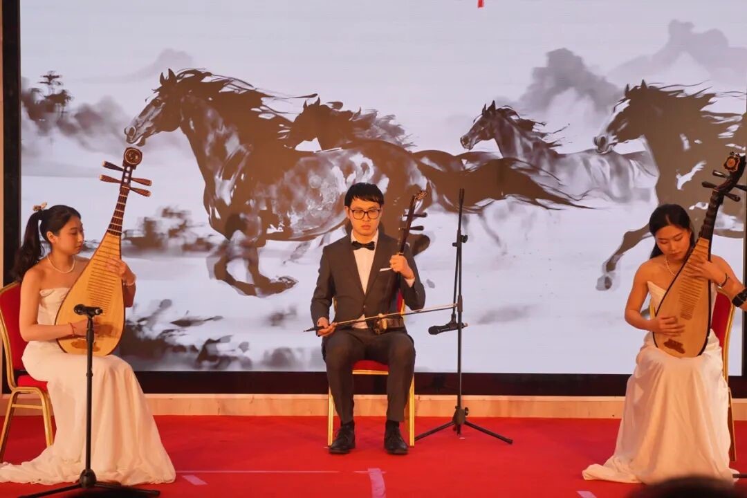 晚会在开场舞《万马奔腾》中拉开帷幕。器乐节目《赛马》激情上演,经典旋律描绘出蓬勃向上的精神气象,赢得现场观众阵阵掌声。流行音乐《奔腾》以积极昂扬的旋律,唱出了新时代青年勇于追梦、敢于担当的精神风采;舞蹈《冰凌花》通过细腻而富有张力的艺术表达,展现了青年学子坚韧、自信、向上的内在力量;歌曲《走向复兴》表达了广大留法学人祝福祖国繁荣昌盛的美好心愿,引发现场观众强烈共鸣,将晚会气氛推向高潮。