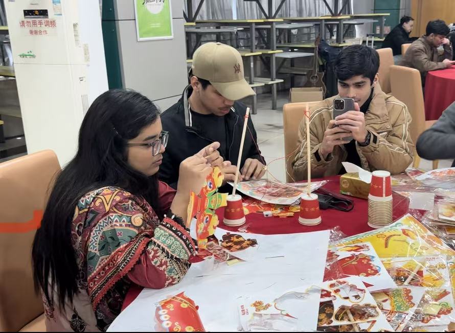 科技参访后,一场充满年味的文化交流活动在东信国际社区温暖开启。留学生们亲身体验了写“福”字、制作非遗漆扇、剪窗花等传统年俗,并与社区志愿者一同包饺子、品年味。在轻松愉快的氛围中,中外青年拉近了距离,加深了对中国传统节庆文化的理解。