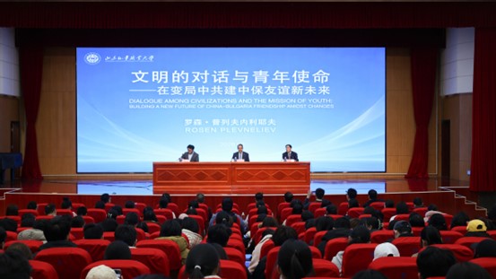 访问期间,罗森·普列夫内利耶夫在图书馆报告厅作了题为“文明的对话与青年使命——在变局中共建中保友谊新未来”的专题报告,深入阐述了其对“智慧领导力”与“持久和平”的思考,并对学校师生围绕中保合作、青年成长、国际形势与职业教育等话题提出的问题逐一细致解答。