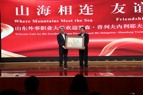 罗森·普列夫内利耶夫对学校优美的校园环境、浓厚的人文氛围、完善的基础设施及各项事业蓬勃发展的良好势头给予了高度评价。他表示,山东外事职业大学积极探索教育创新,办学理念鲜明、发展活力充沛,令人印象深刻。学校在国际交流、人才培养和校园文化建设等方面取得的成绩,充分展现了中国职业教育的开放姿态与时代风采。他将把山东外事职业大学视为“我的大学”,未来将全力为学校的国际化发展、为中保两国的友好交流持续贡献力量。