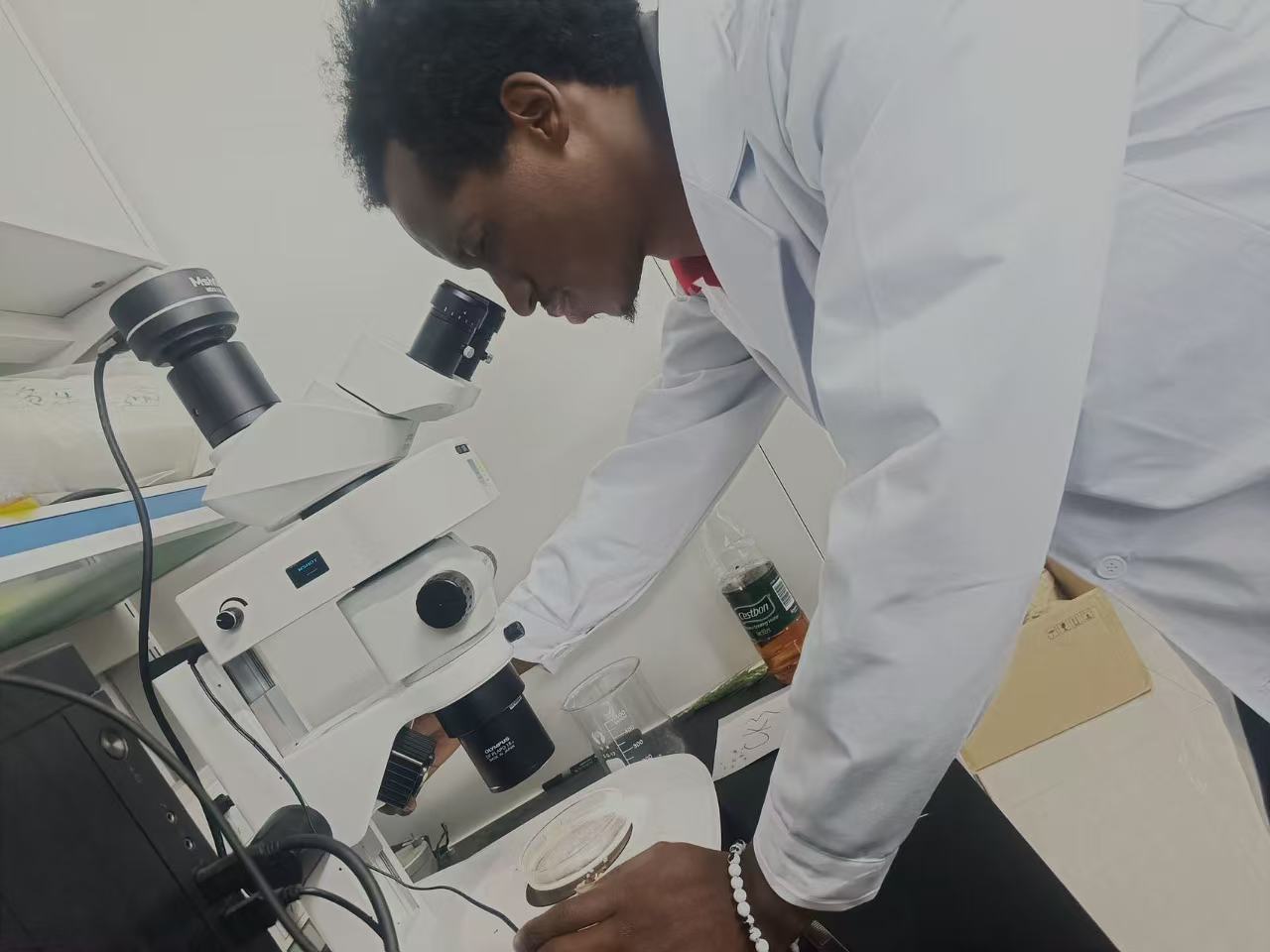初到中国时,他面临语言不通、环境陌生的双重困境,日常交流受阻、专业文献难以读懂,一度陷入适应难题。对中国文化的热爱和对梦想的执着,支撑他咬牙攻克语言关,每天利用课余时间刻苦学习中文,主动向老师同学请教,快速融入校园学习与科研生活。短短一年便可利用中文进行日常交流,并具备了阅读专业文献的能力。在此过程中,他也对中国“知行合一、兼济四方”的传统理念有了更深理解,这份文化认同与榜样精神相互交融,为他后续深耕科研、践行使命筑牢了坚实根基,也让他更加笃定要将中国先进农业技术带回家乡,助力家乡粮食安全事业。