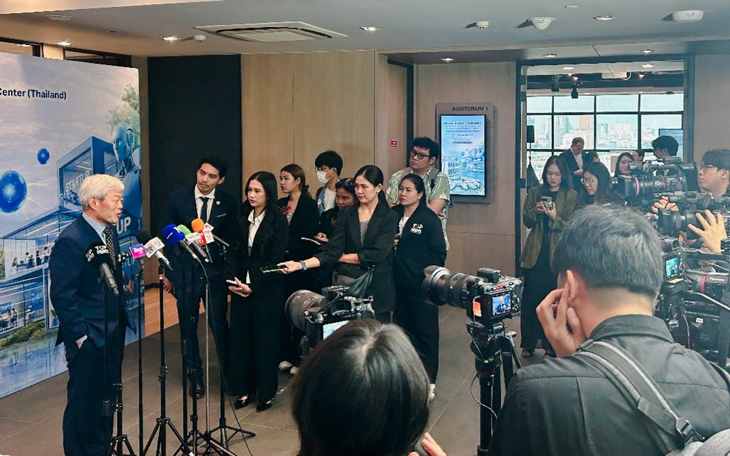 席酉民在揭牌仪式后接受泰国媒体采访