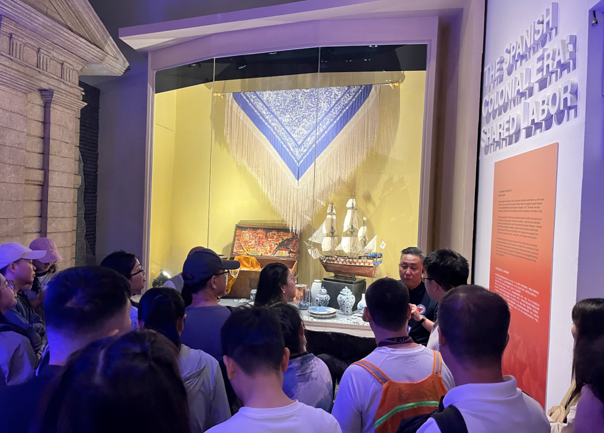 下午,留学人员走进菲华历史博物馆,深入了解在菲华人华侨的奋斗历史与卓越贡献。在志愿者王培元(菲律宾华裔青年联合会前会长)的引导下,大家依次参观了“早期移民”“殖民时期”“抗日斗争”“融入与贡献”等多个展区。珍贵的历史照片、实物遗存与翔实的文字记录,生动再现了旅菲华人披荆斩棘、艰苦创业、心系祖国的动人历程。