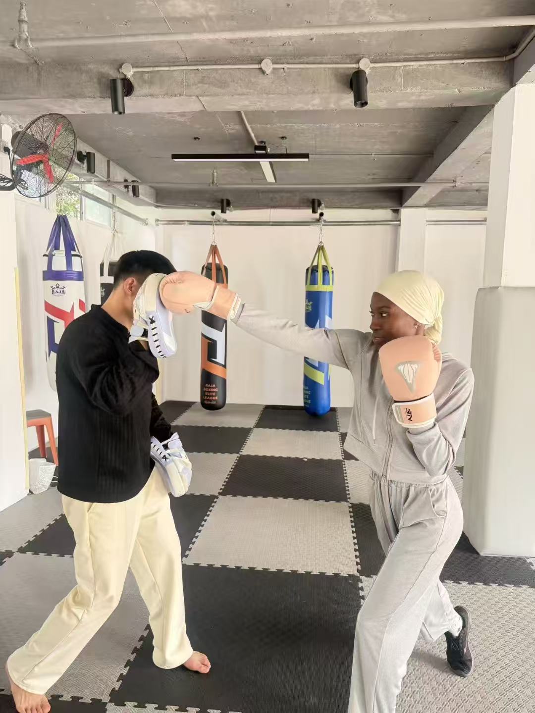 同时,我也在学习之余坚持运动。拳击,对我来说不是为了对抗,而是为了学习纪律、保护自己,并不断突破自我极限。我经常去健身房,在那里认识了学生、职场人士以及有远见和抱负的企业家,这样的氛围推动我不断提升自己。