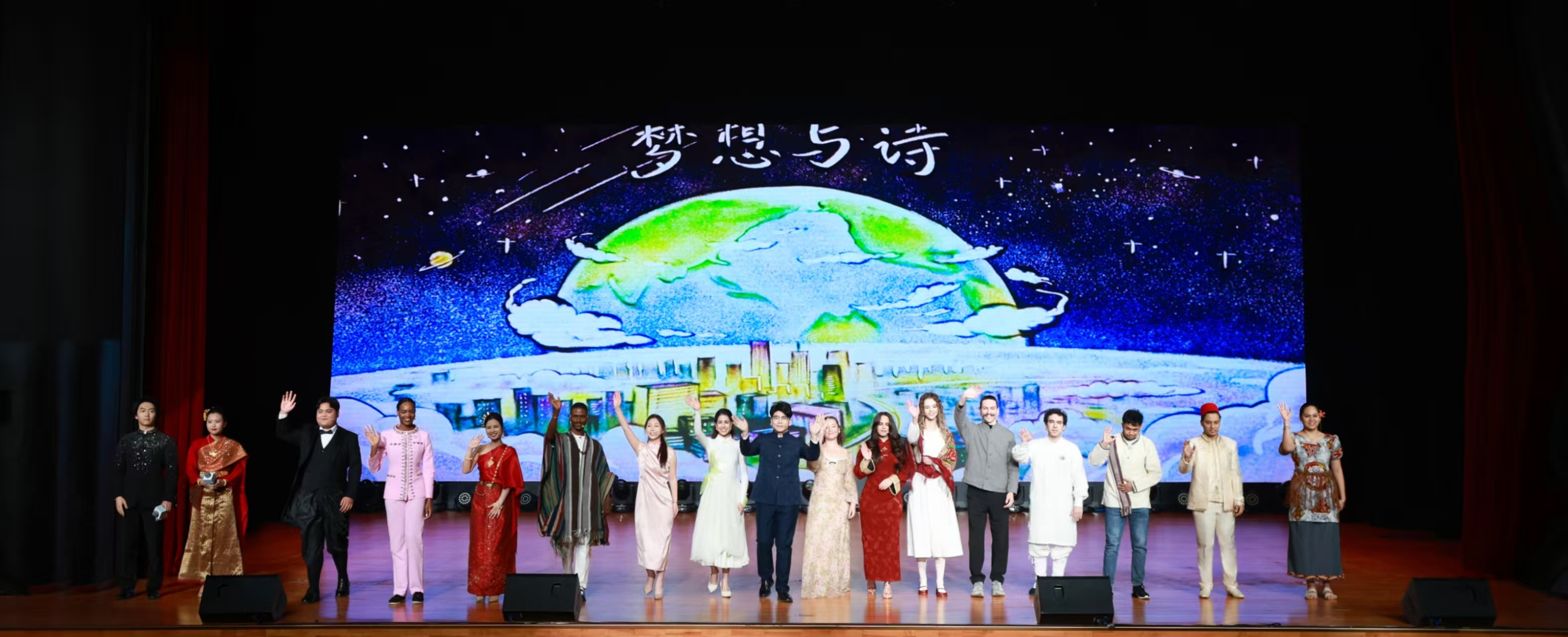 启动仪式上,中外嘉宾共同观看了讲述五位外国青年学习中文、实现梦想的主题沙画剧表演《梦想与诗》,并见证2026年“国际中文日”暨“诗约四海”全球中文诗友会启动。