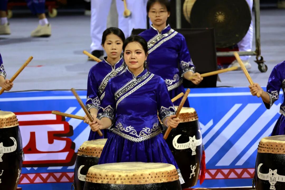 在河池市体育馆,伴随激昂鼓点,开场节目《鼓鸣盛世龙狮献瑞》震撼登场,铜鼓声声、龙狮腾跃,瞬间点燃全场热情,正式拉开本次“刘三姐歌谣”合唱比赛的帷幕。来自河池市职教集团各院校的10支代表队齐聚一堂,用嘹亮山歌传承民族文化,唱响民族团结的时代强音。
