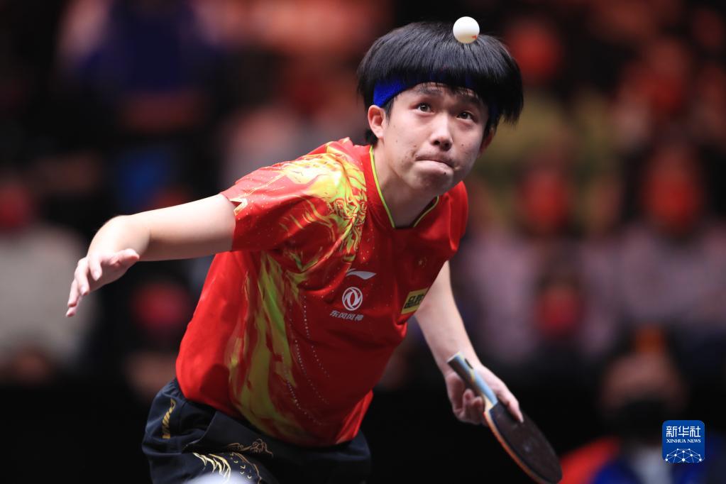 10月30日,王楚钦在比赛中发球。新华社发(高志勇 摄)