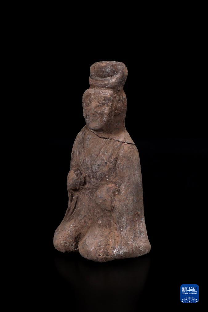 这是北周宇文觉墓出土的跪坐女俑(资料照片)。新华社发(陕西省考古研究院供图)