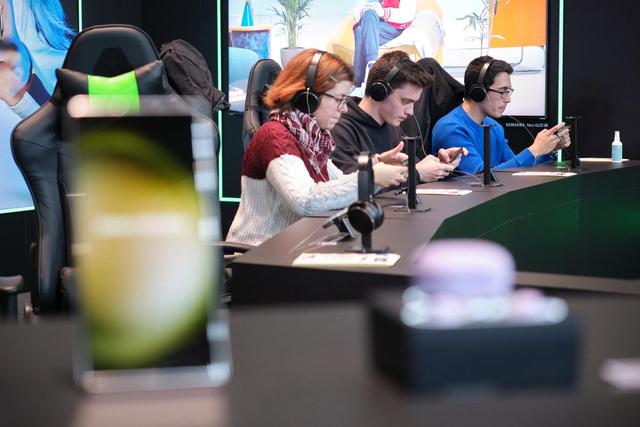 2023年2月27日,参观者在西班牙巴塞罗那举行的世界移动通信大会上体验手机游戏。新华社记者孟鼎博摄