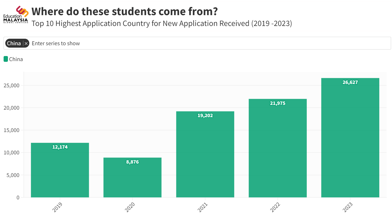 近年来,中国留学生正在涌向马来西亚、新加坡、泰国等东南亚国家。马来西亚教育全球服务中心(EMGS)发布的2023年申请赴马留学的学生数据中,来自中国的申请高达26627份,占比第一。