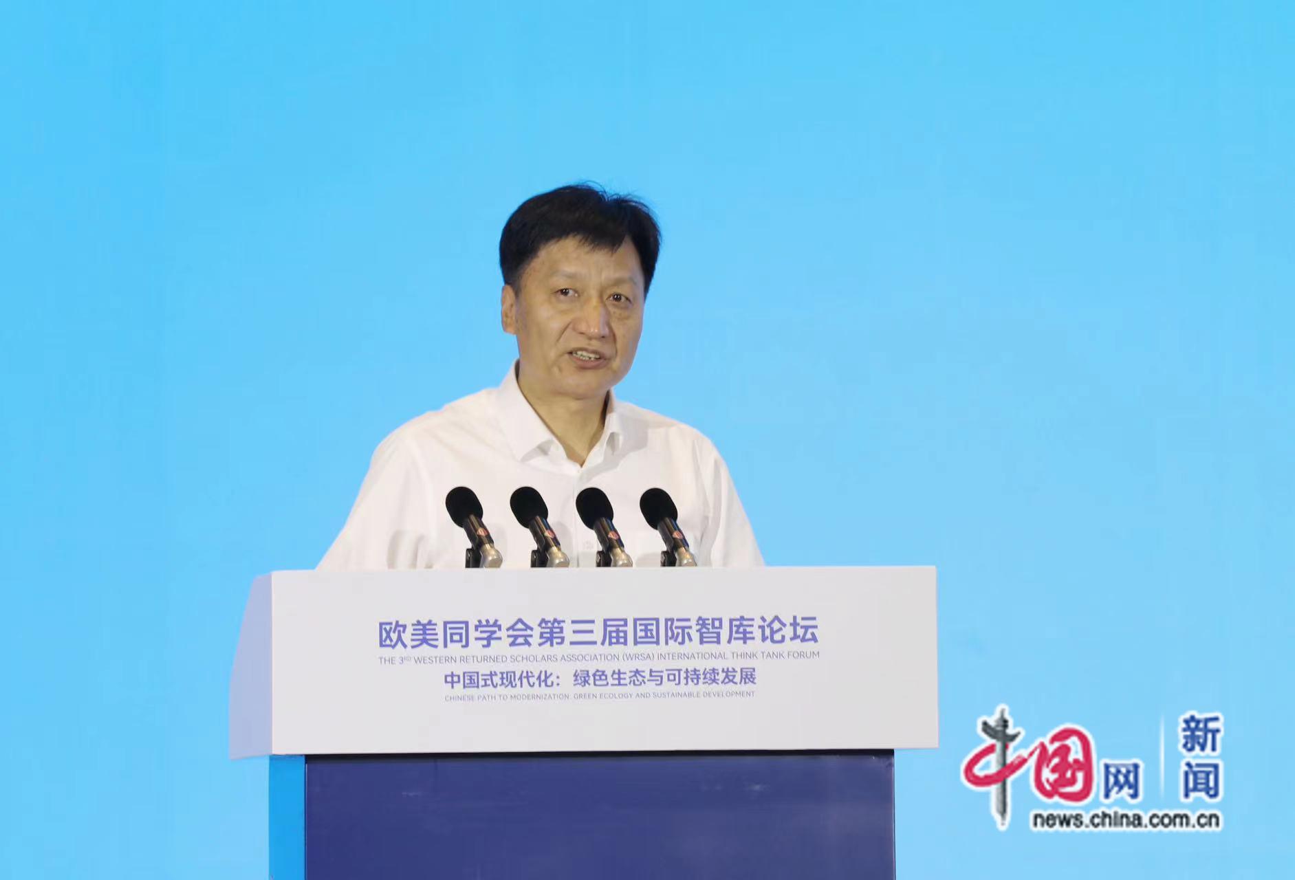 中国网6月23日讯 作为欧美同学会主办的重要民间外交活动,6月22日,第三届国际智库论坛在浙江省湖州市隆重开幕。全国人大常委会副委员长、欧美同学会会长丁仲礼出席开幕式并作主旨演讲。欧美同学会副会长、全国政协常委、教科文卫体副主任曹卫星,浙江省委常委、浙江海外联谊会会长王文序,湖州市委书记陈浩,“一带一路”绿色发展国际研究院联合主席、欧盟亚洲中心主席埃里克·索尔海姆等出席开幕式并致辞。欧美同学会秘书长李民主持开幕式及大会论坛。